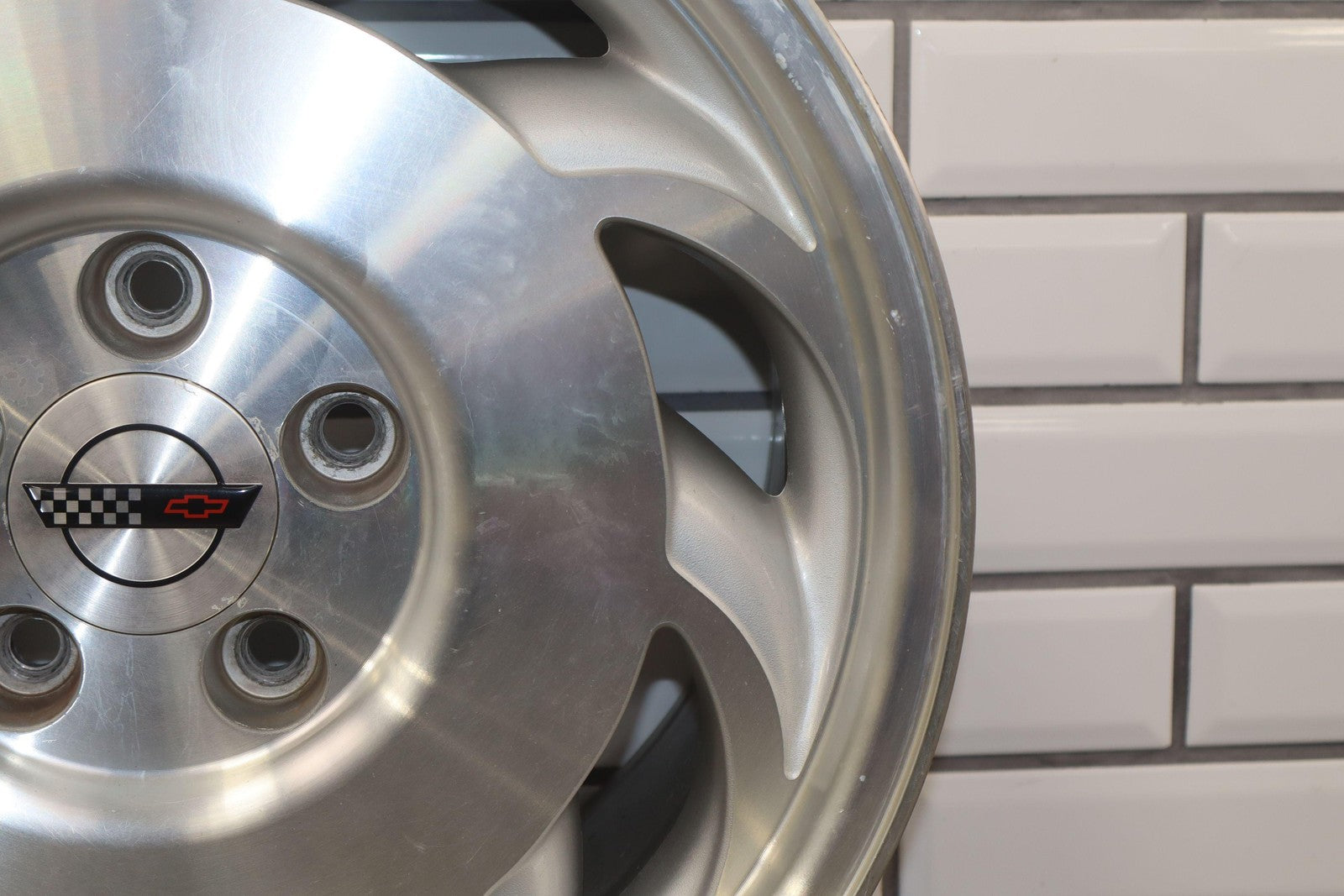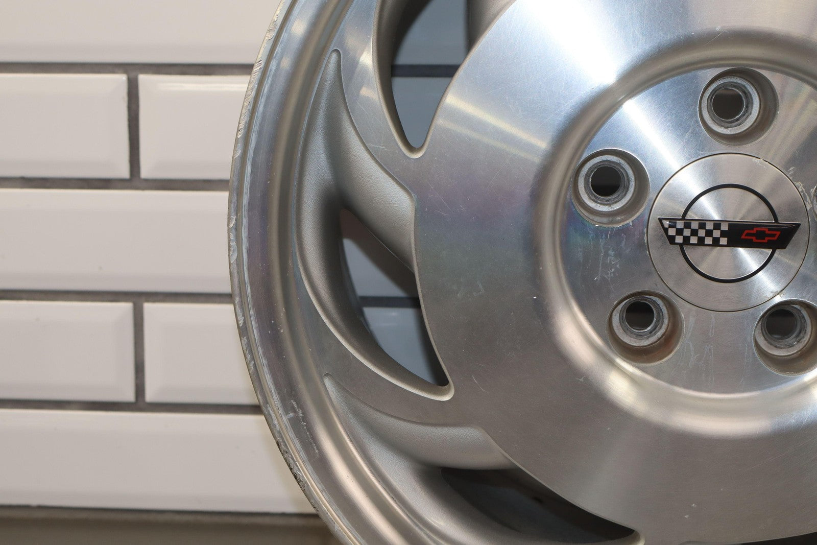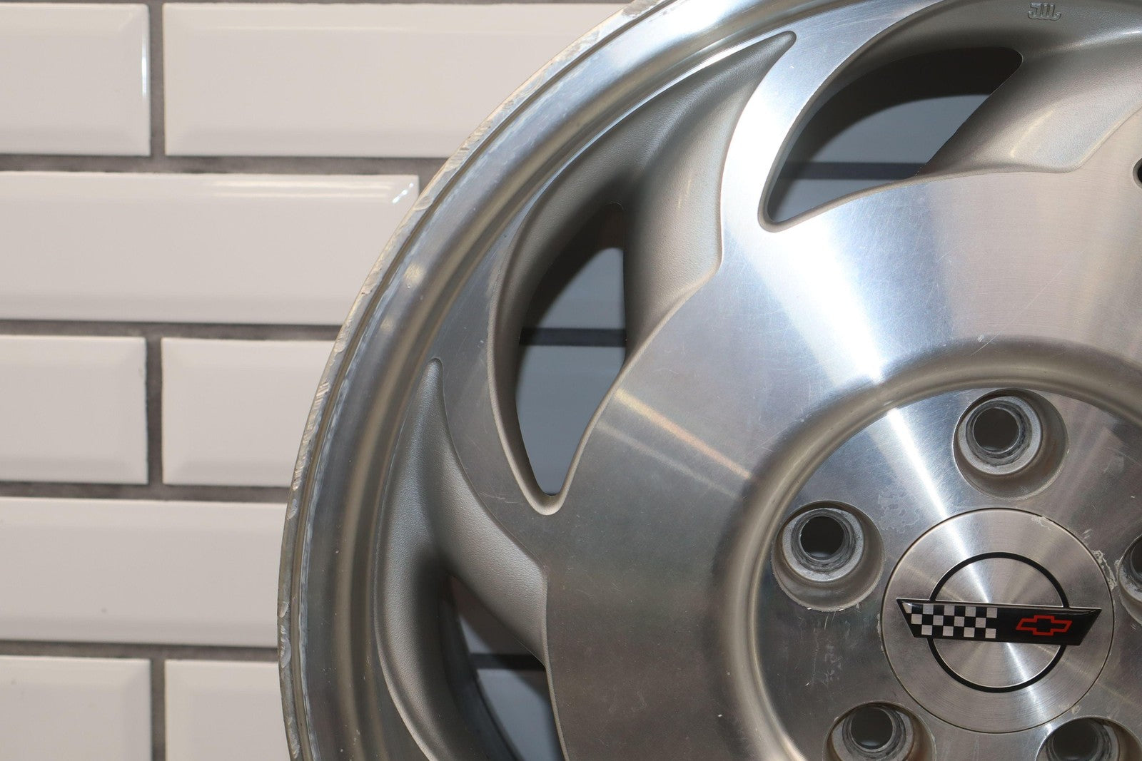 Lh Rear, 17x9.5 Directional Wheel, Silver/machined, Decent Crub Rash, Lightly Weatherined Finish, Spun True