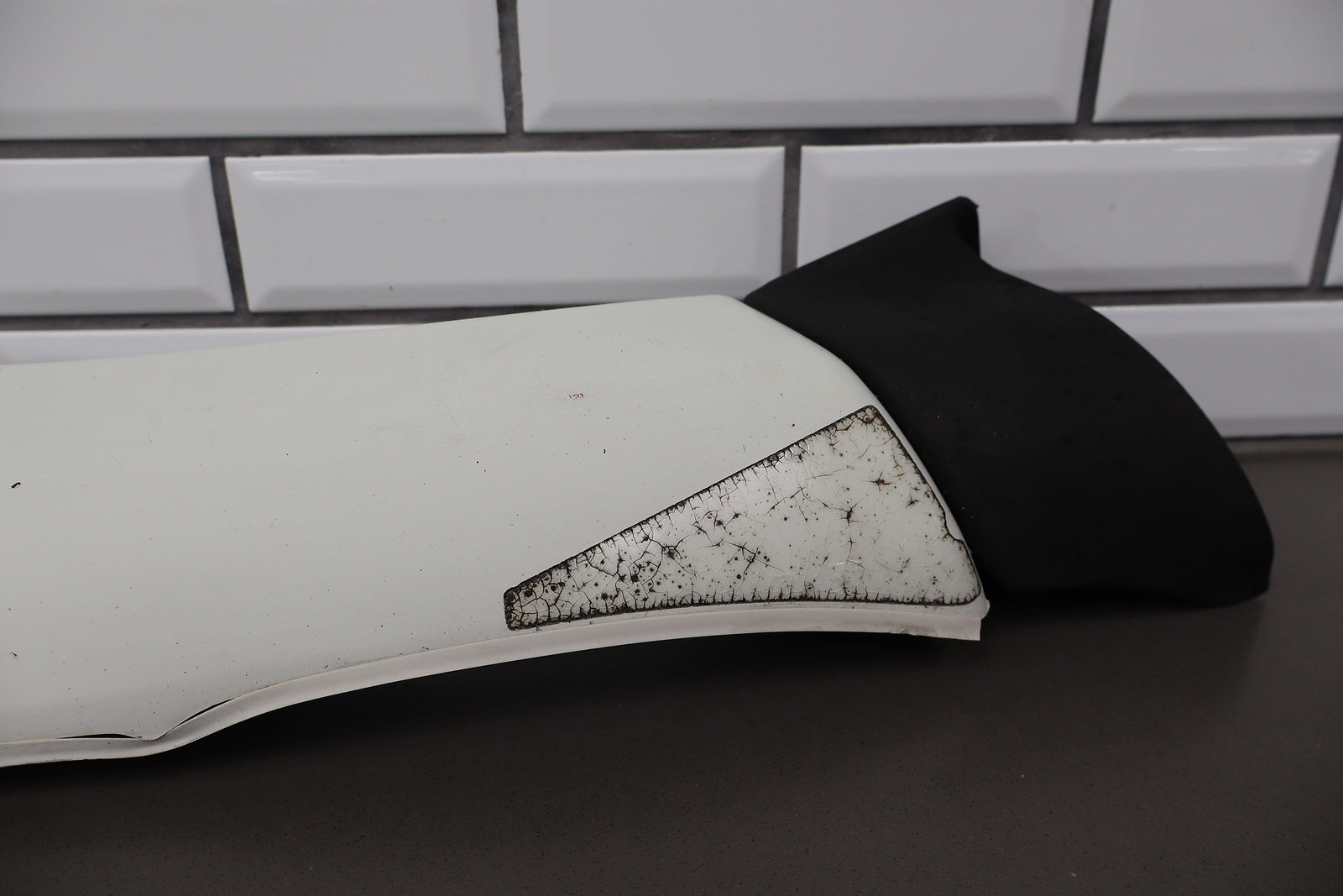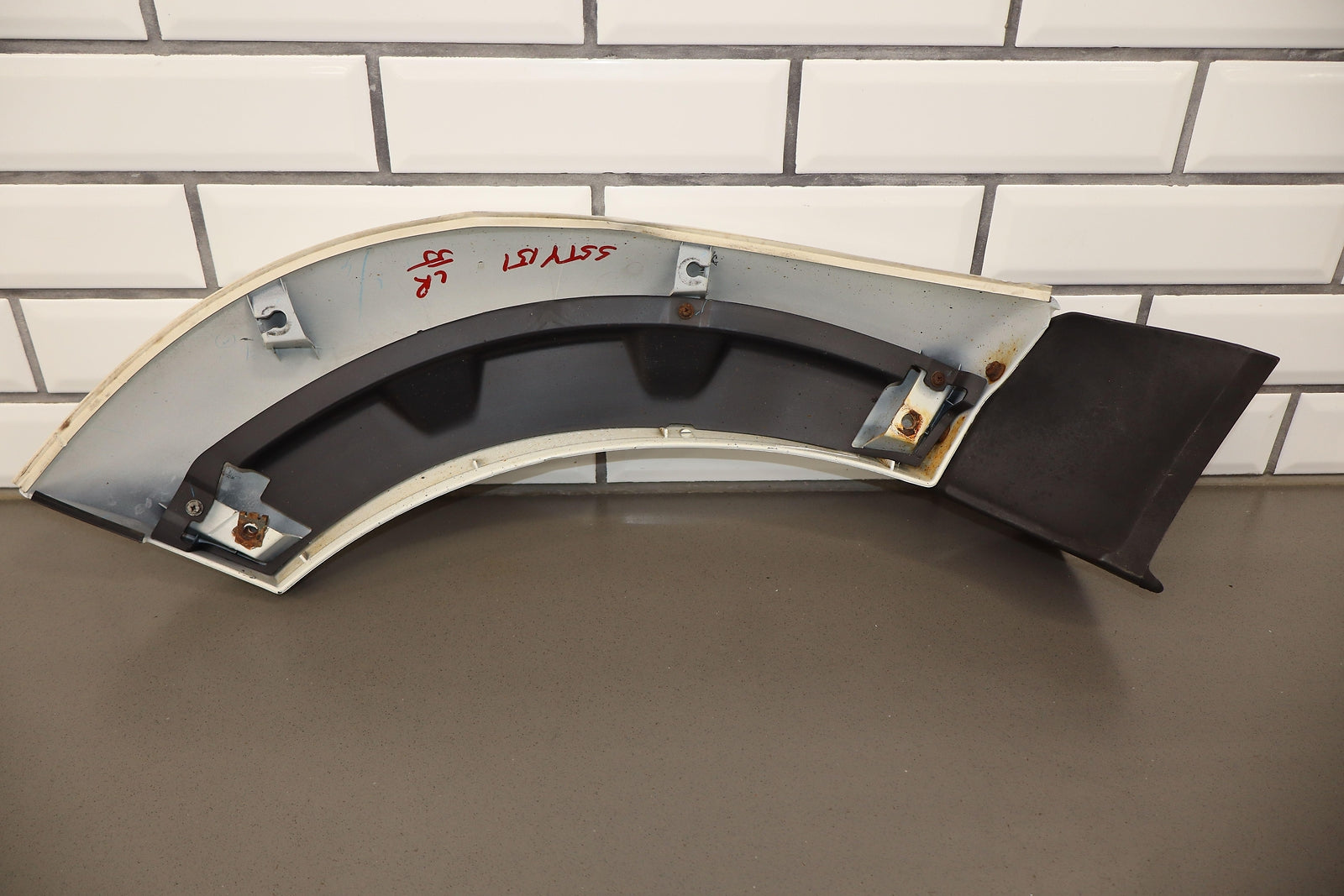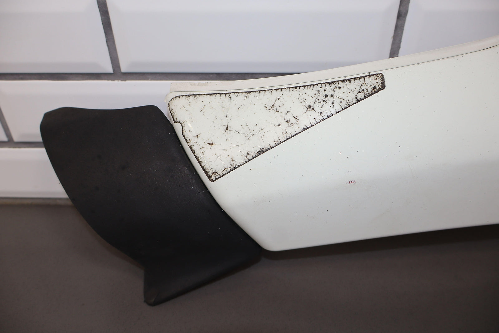 Lh Rear Door Moulding/flare, White (045), Heavy Sun Fade, Decent Scuffs/scratches