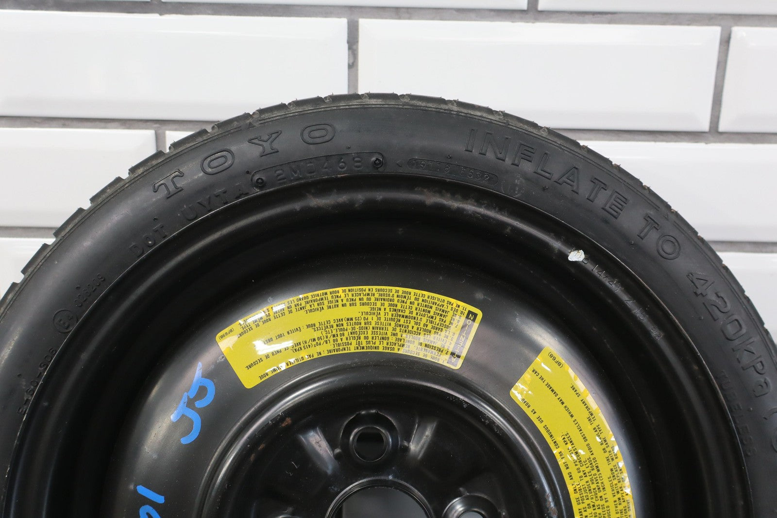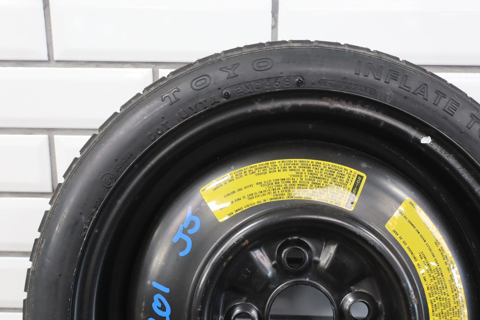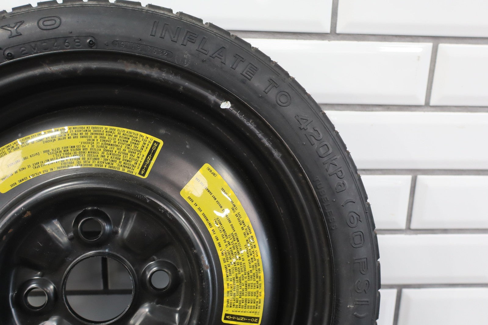 14x4 Steel Compact Spare, T115/70d14 Toyo Temporary Tire, 3/32, 468 Dot (1998)