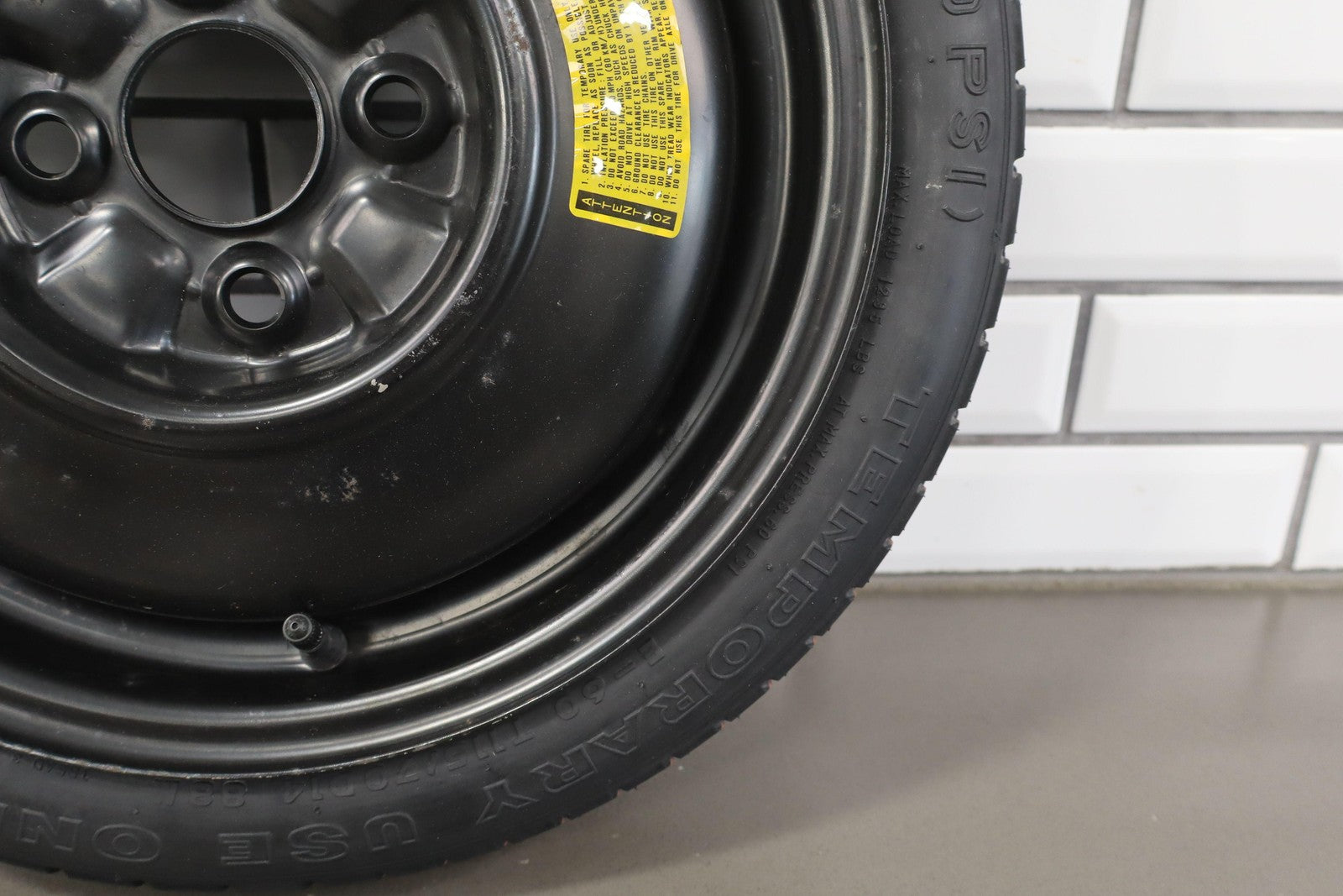 Important notes: 14x4 Steel Compact Spare, T115/70d14 Toyo Temporary Tire, 3/32, 468 Dot (1998)
