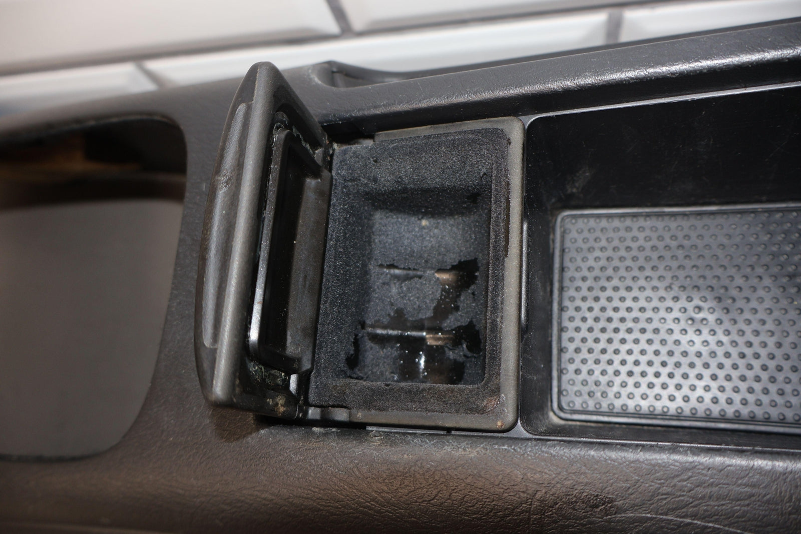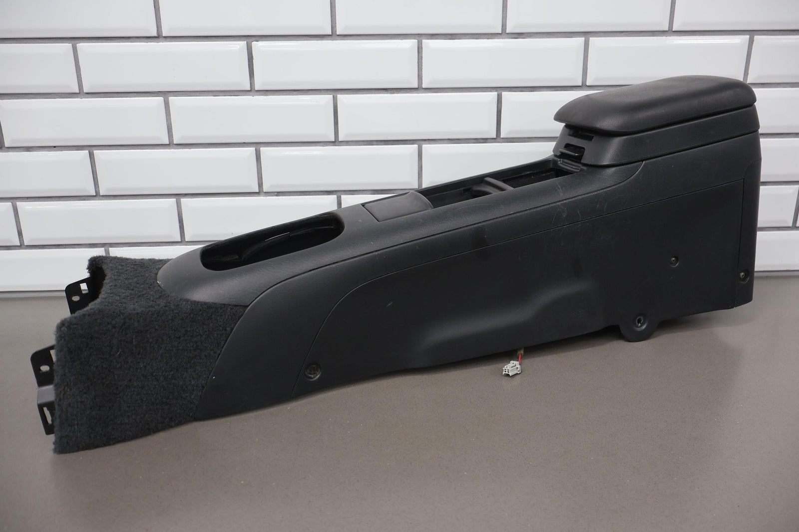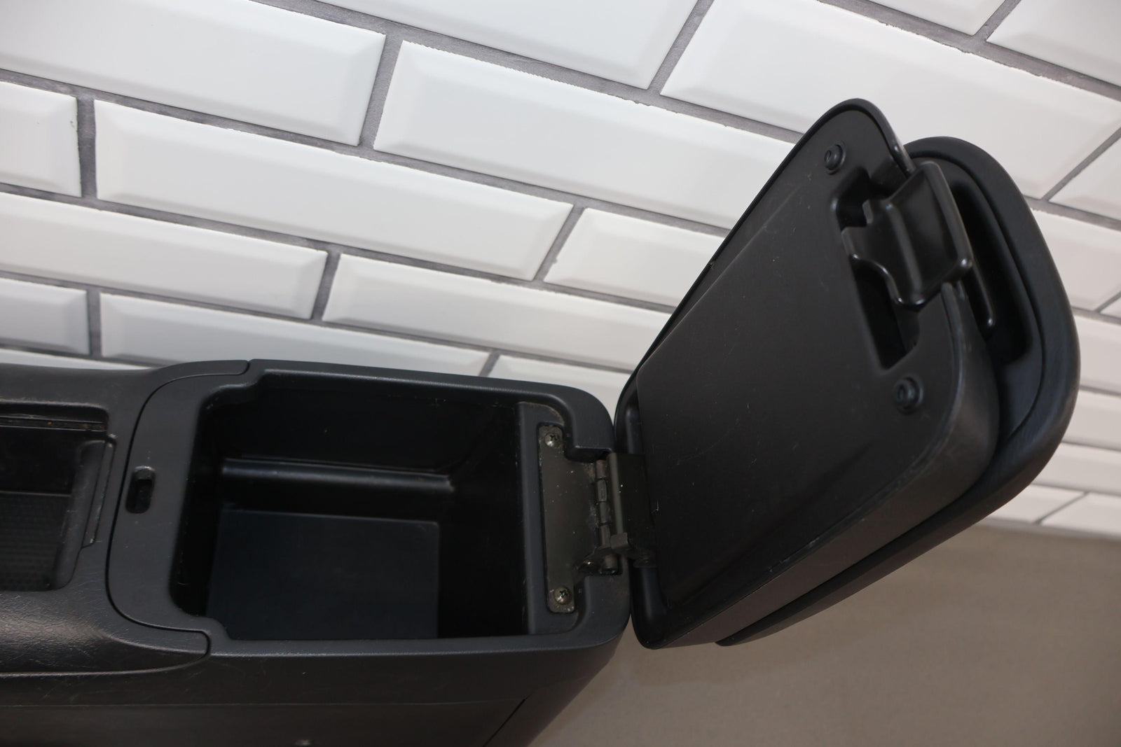 Floor Console (auto Trans), Black (type A), Includes Lid, Latches Function Properly, Light Staining, Mild Scuffs/scratches