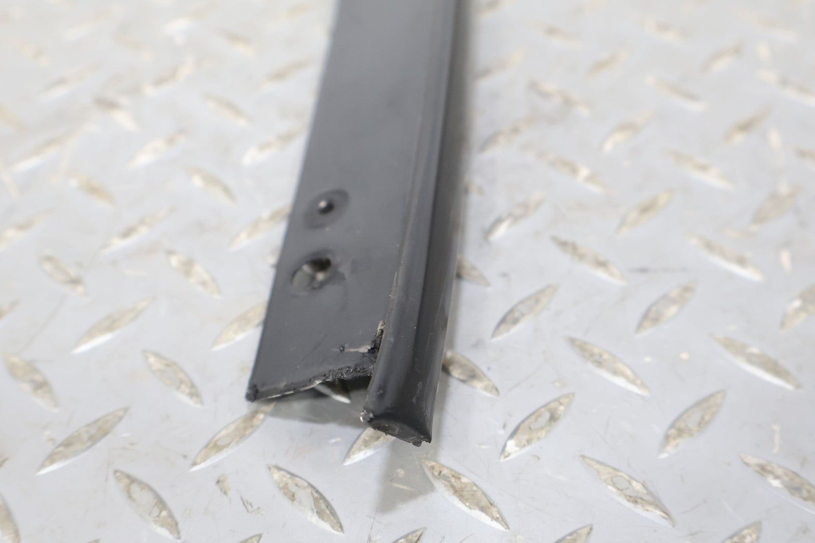 Lh Exterior A Pillar Trim, Black Textured Plastic, Minor Sun Fade, Mounted Solid
