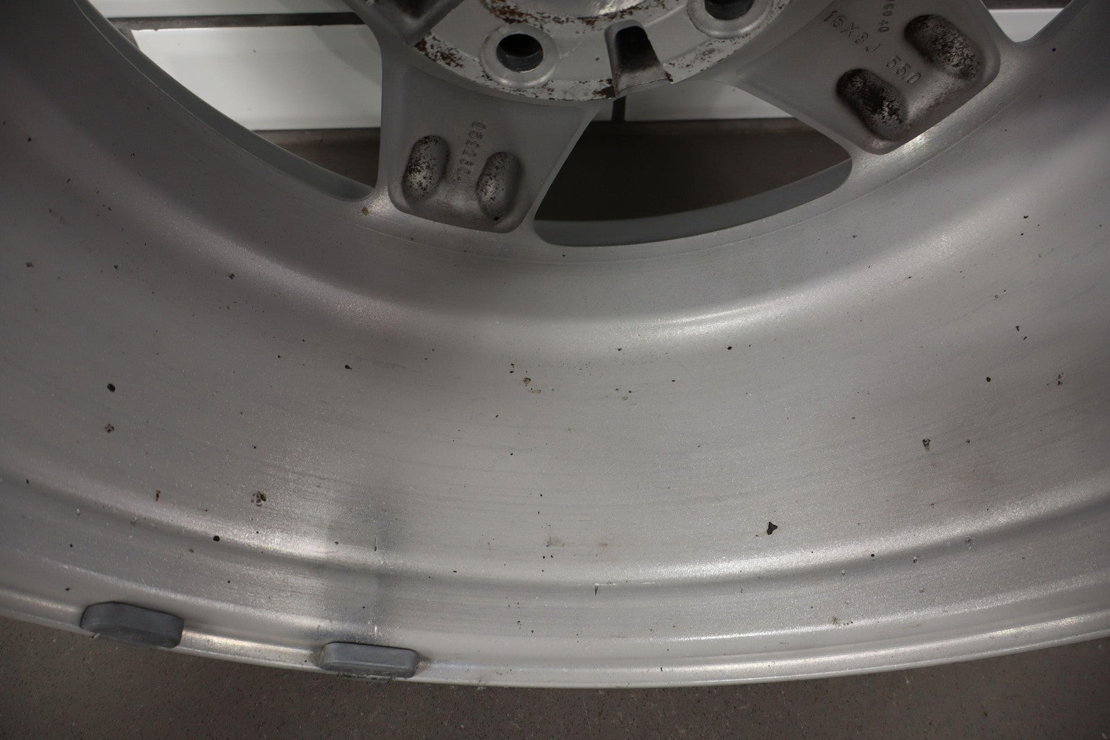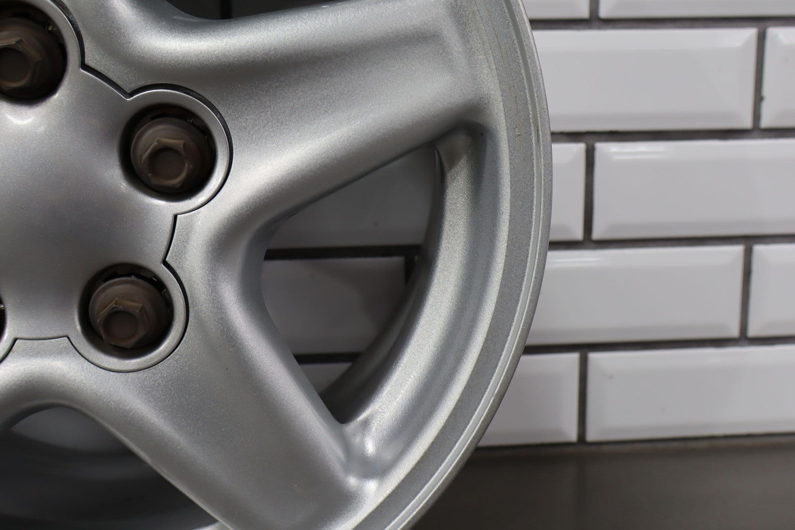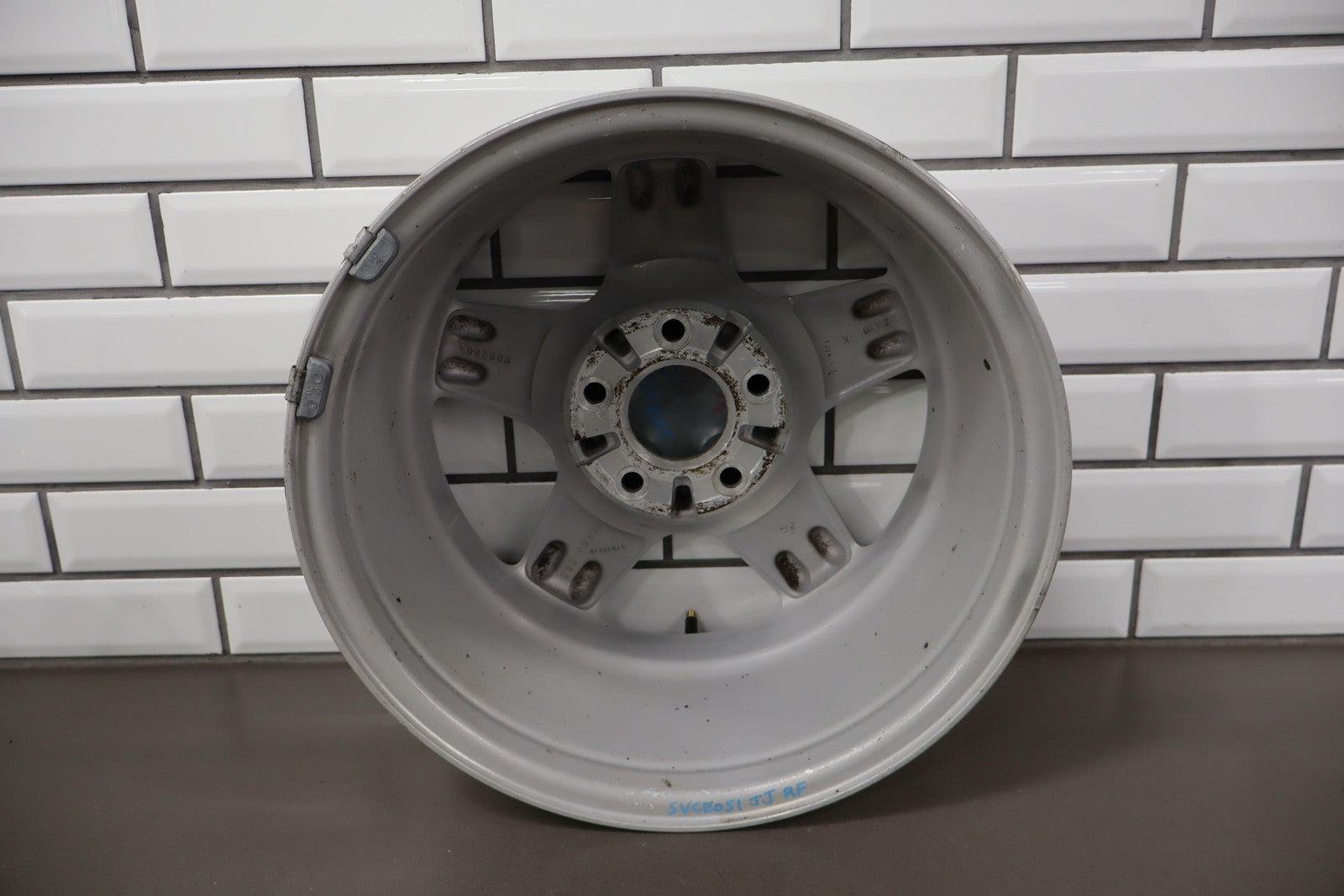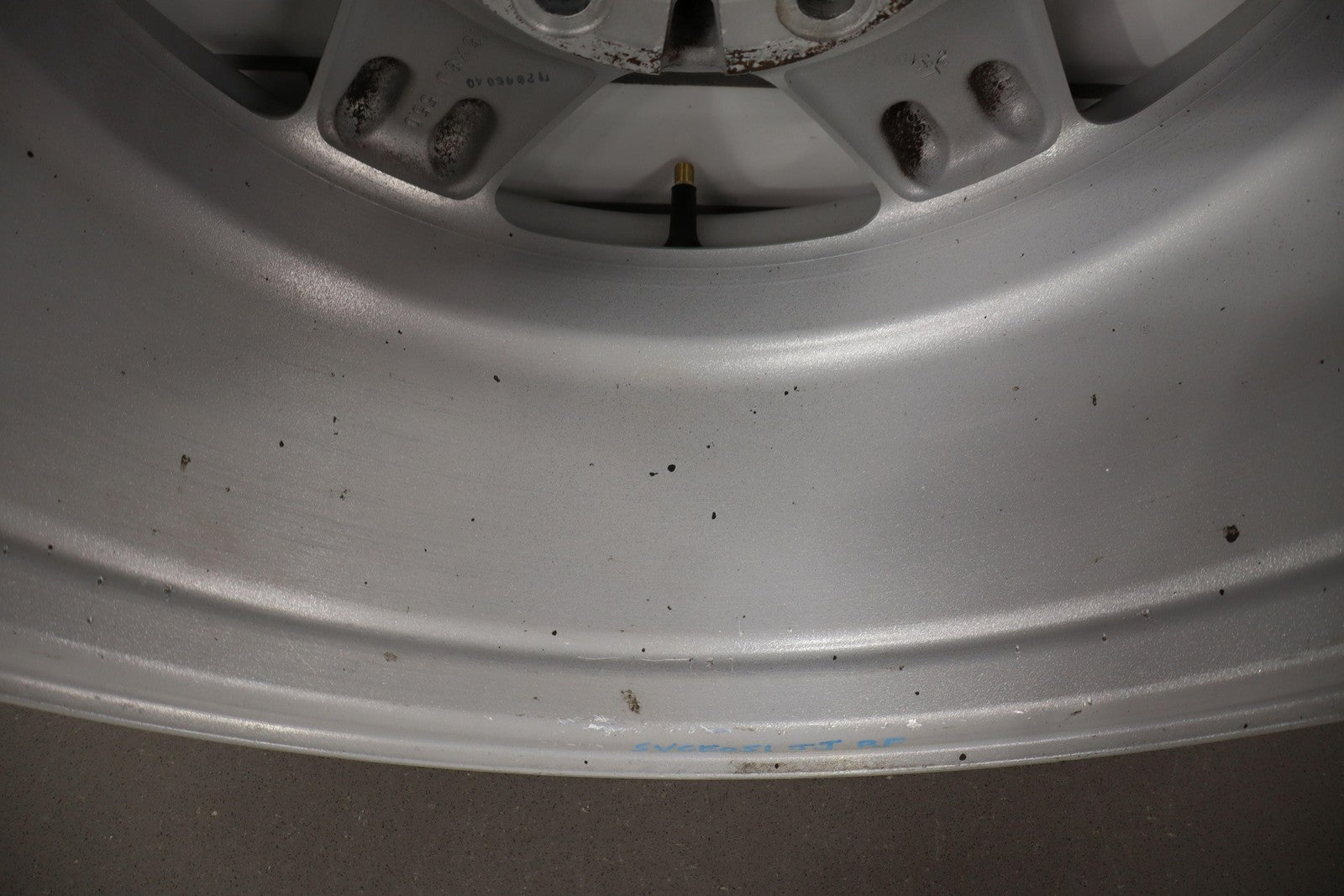Rh Front, 16x8 Silver 5 Spoke Wheel, Light Knicks, Spun True