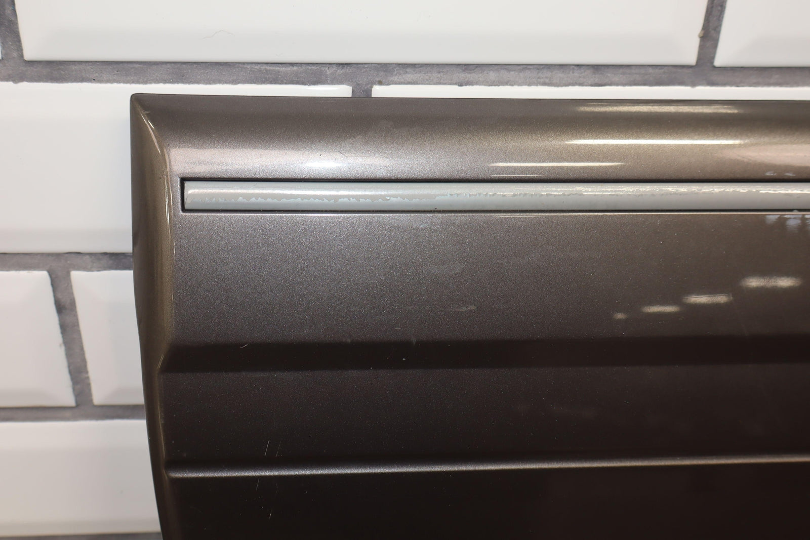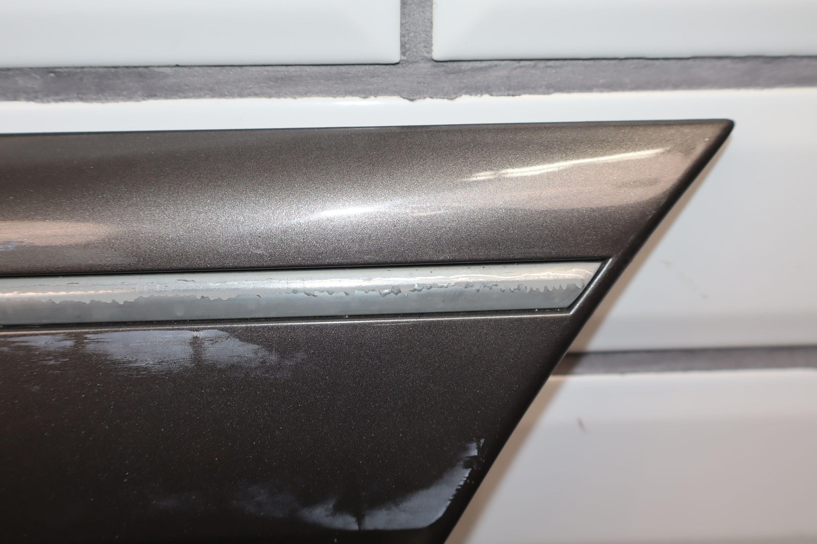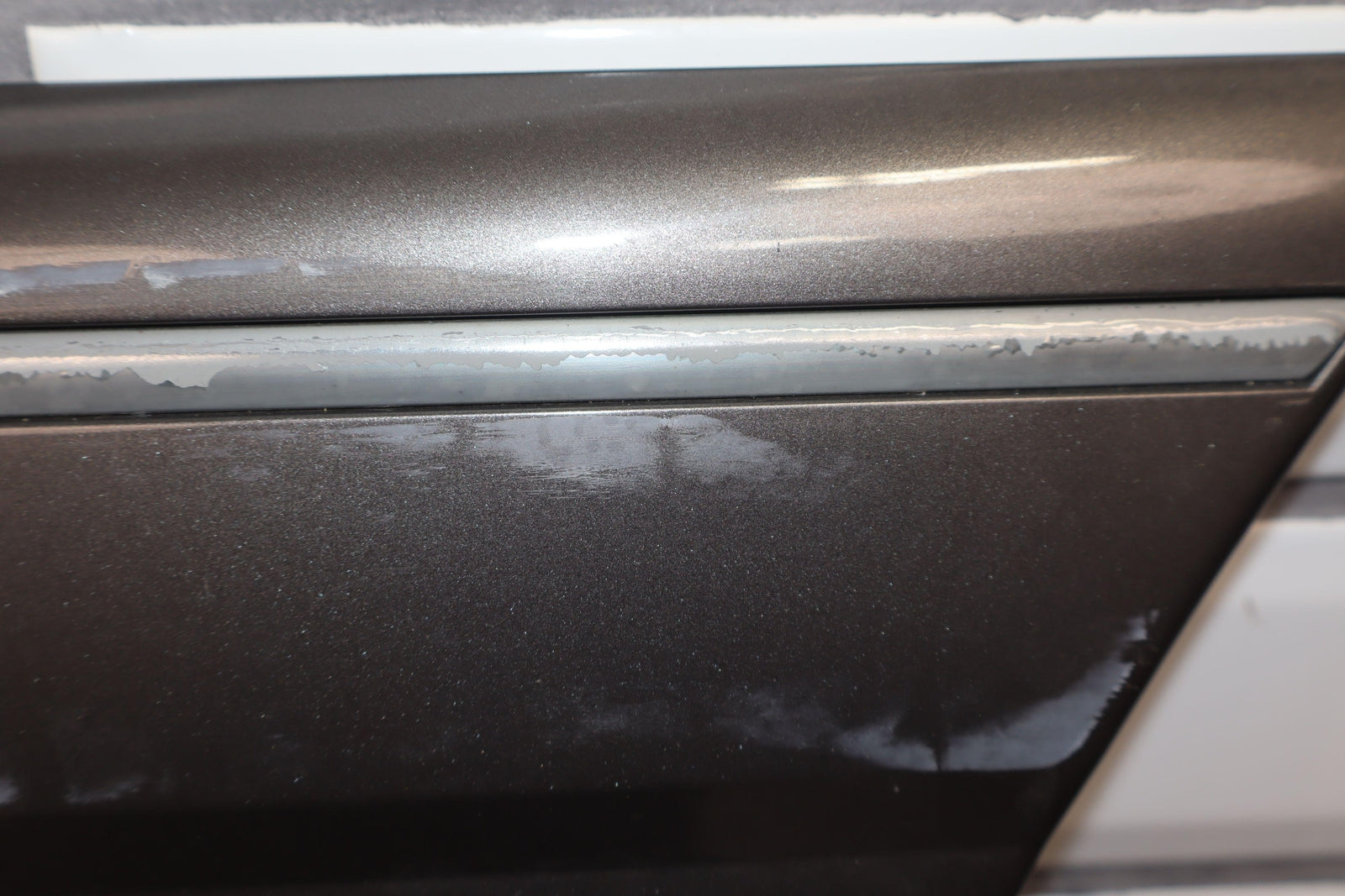 Lh Rear Door Moulding, Weathered Chrome Trim, Decent Scuffs Towards Rear, Light Scratches