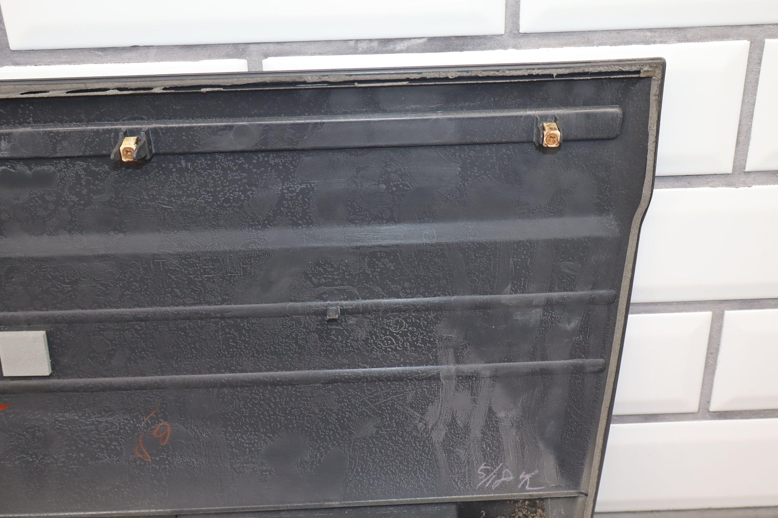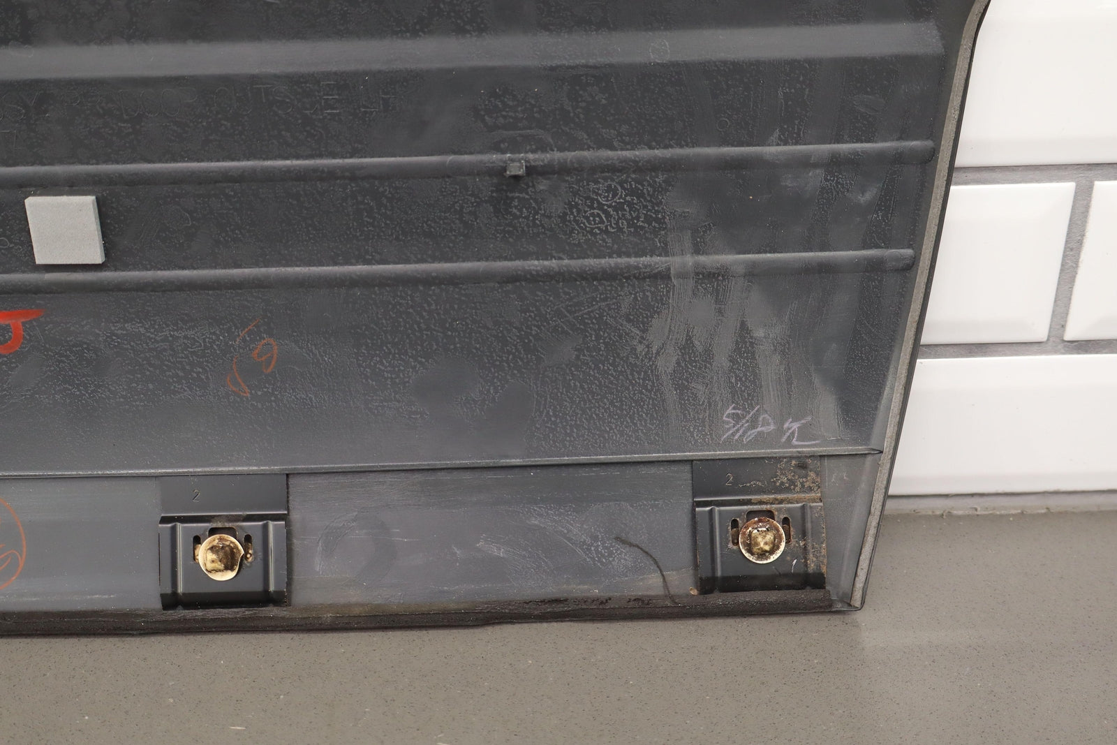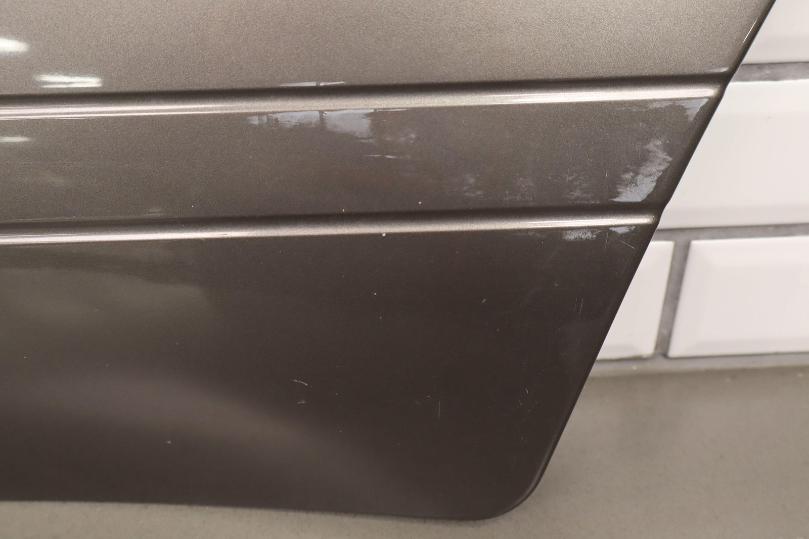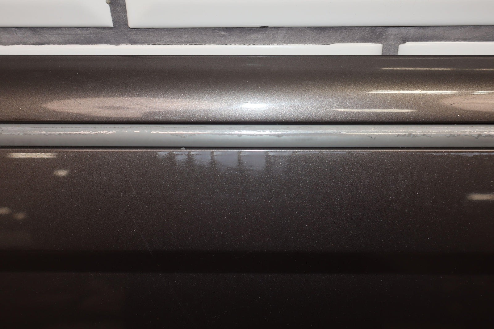 Lh Rear Door Moulding, Weathered Chrome Trim, Decent Scuffs Towards Rear, Light Scratches
