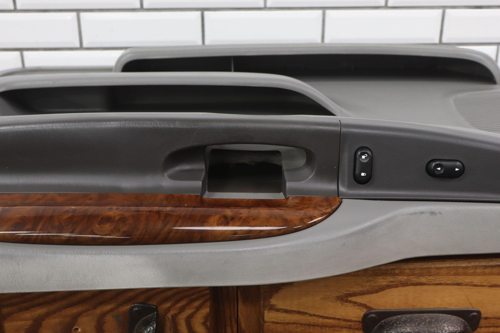 Rh Front, Medium Flint (4e) W/woodgrain, Includes Window Switch, Decent Fade Across Top, Minor Signs Of Wear