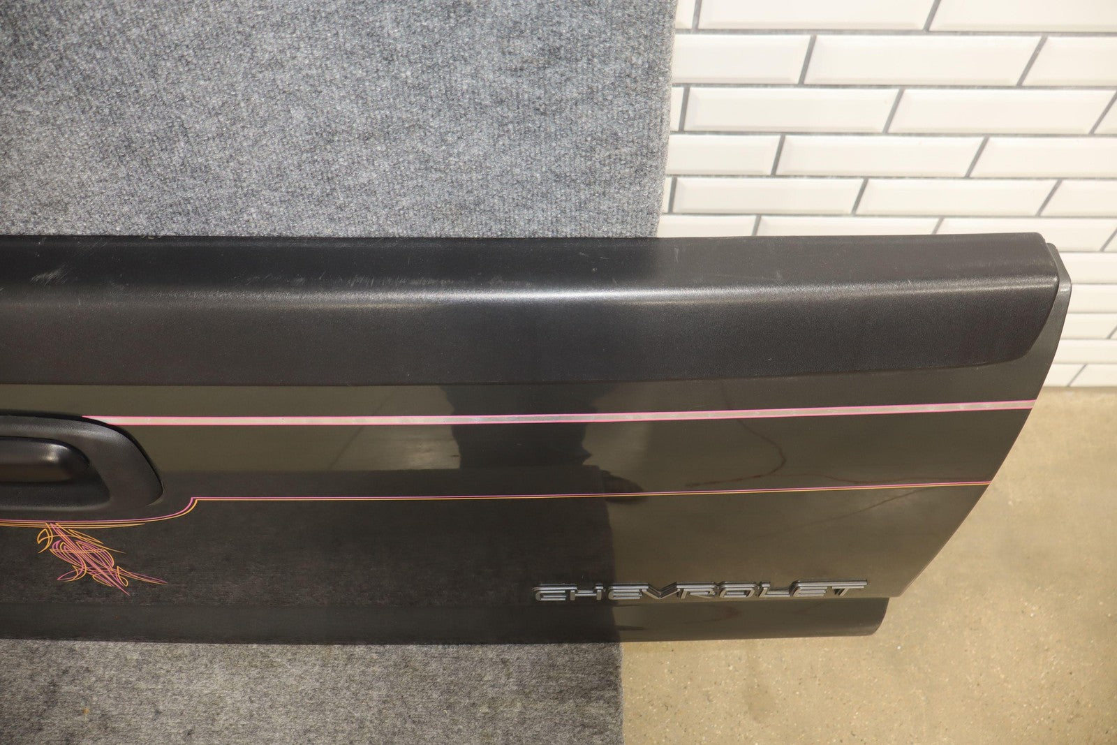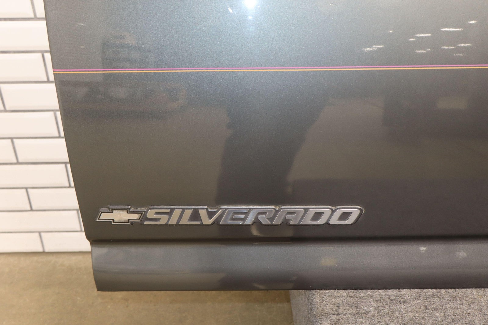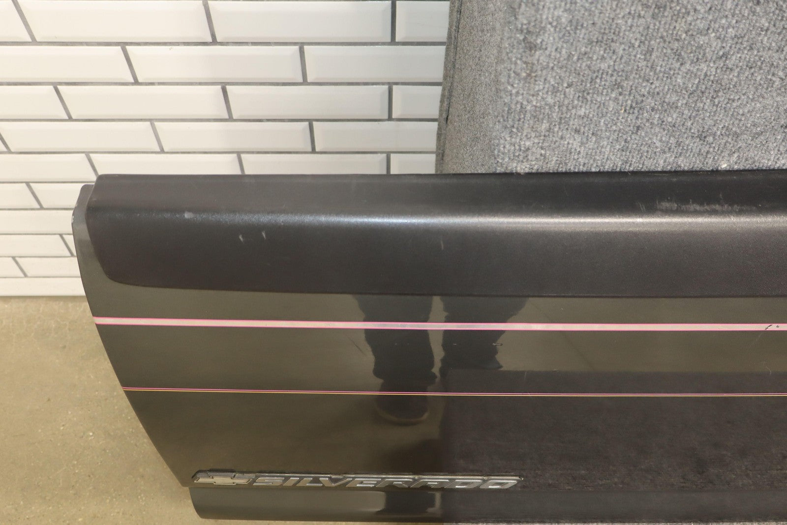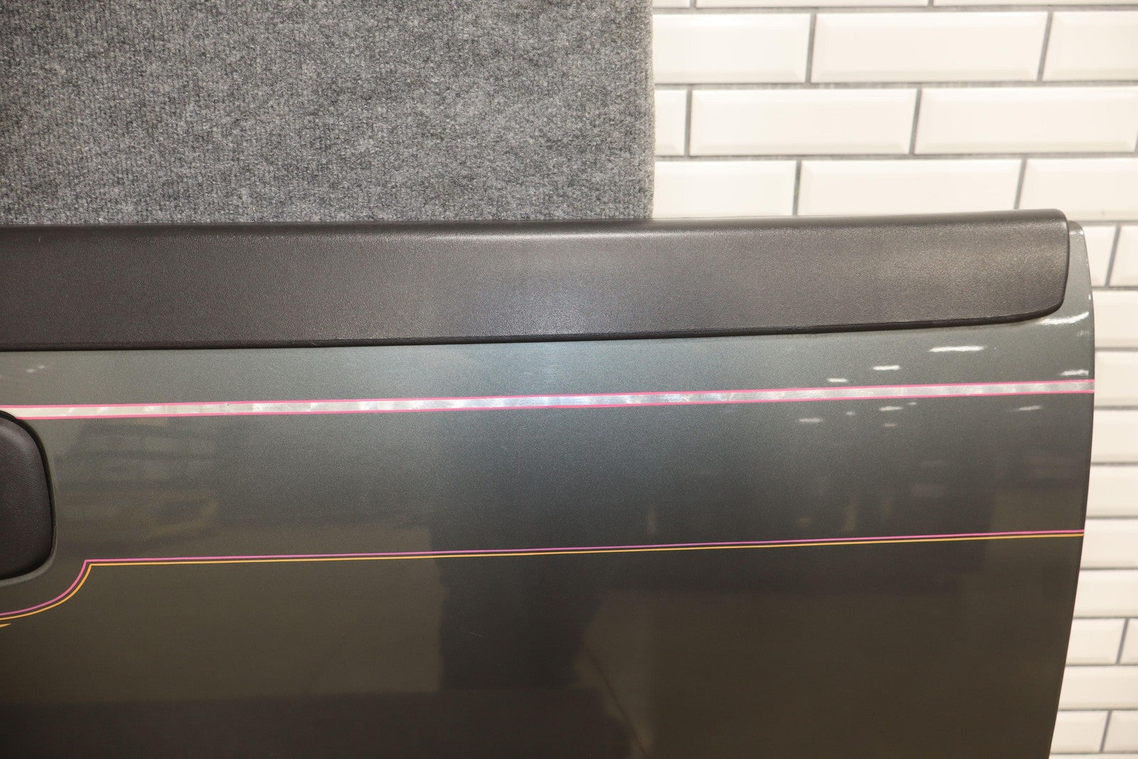 Important notes: Medium Charcoal (14u) W/custome Pinstripe, Multiple Mild Scratches Throughout, Upper Trim Scraped
