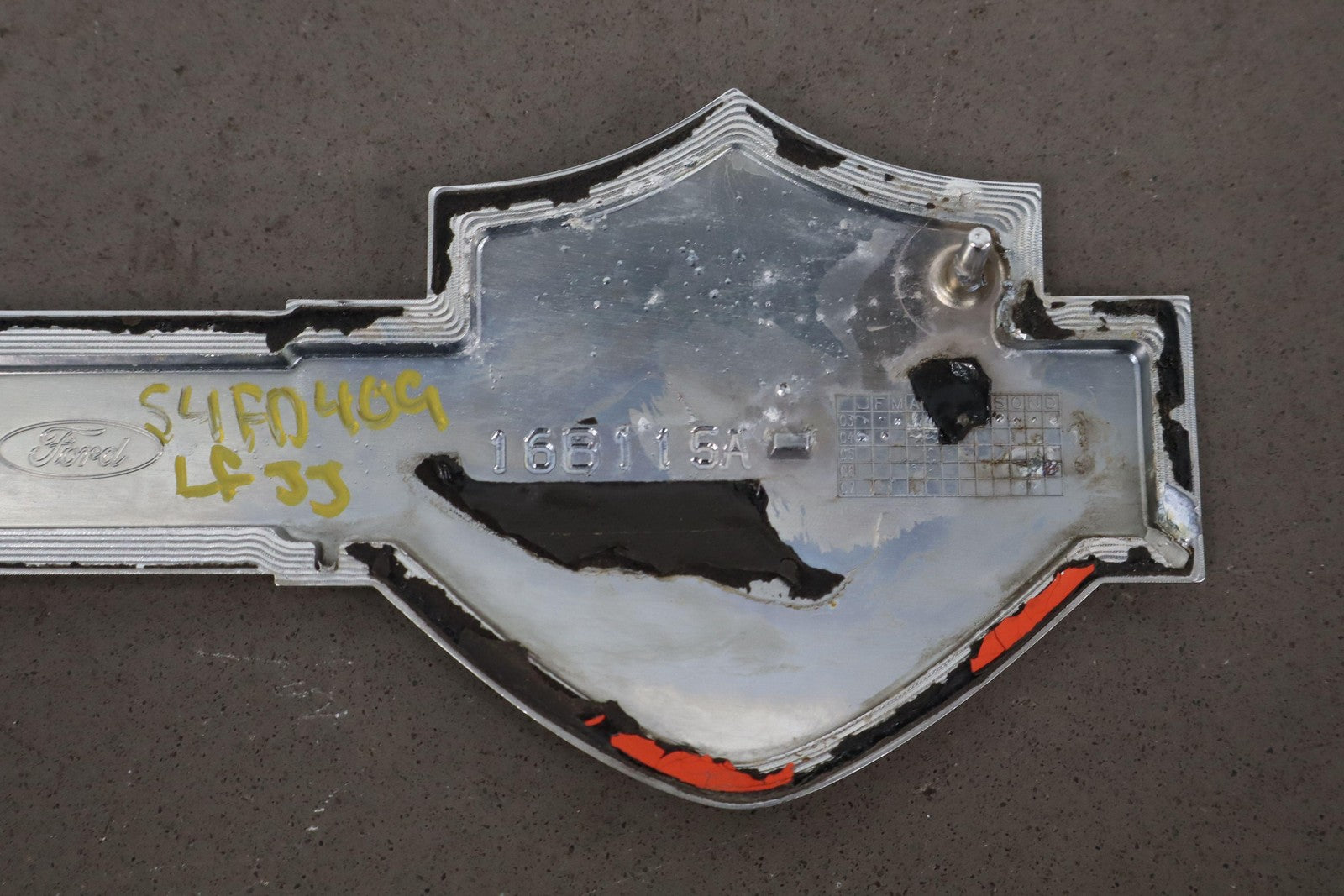 Important notes: Rh Fender Mounted Harley-davidson Badge, Mild Weathering, 16b115a